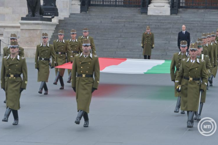 Katonai tiszteletadás mellett, Áder János köztársasági elnök jelenlétében ünnepélyesen felvonták a nemzeti lobogót az 1848-49-es forradalom és szabadságharc évfordulóján,
