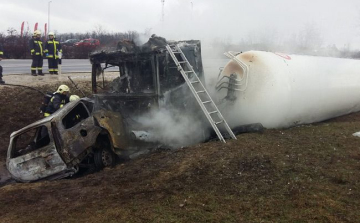 Összeütközött egy teherautó és egy autó vasárnap késő délelőtt az M2-es autóút dunakeszi szakaszán, a benzinkútnál.
