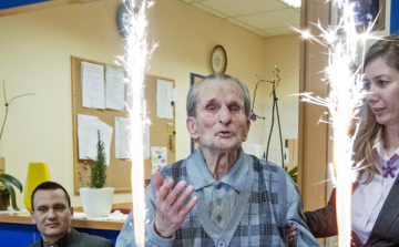 Az ország legidősebb férfiját, a 110 éves Gallai Rezsőt születésnapi tortával köszöntötték fel a Lepke utcai átmeneti gondozóházban Győrben kedden.