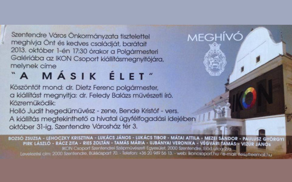 A másik élet címmel nyílik meg ma délután az IKON Csoport kiállításának a Polgármesteri Galériában.