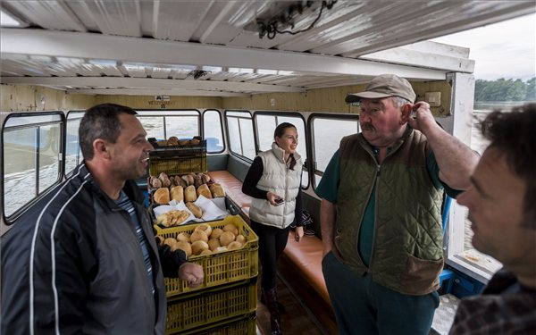 Élelmiszert, ahogy a fotón is pékárút a Visegrád-Szentgyörgypuszta és Kisoroszi között közlekedő hajóval szállítják a településre. MTI Fotó: Mohai Balázs