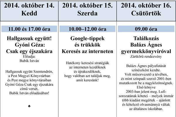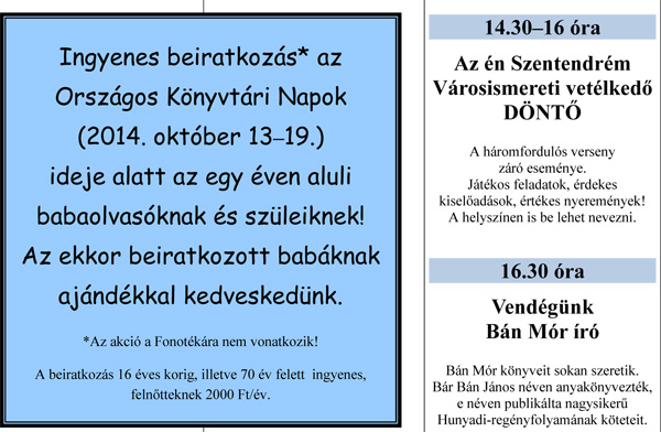 Csak egyszer egy évben - Országos Könyvtári Napok Szentendrén - program