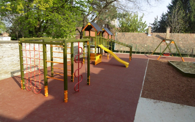 Új játszótéret építettek a pomázi Sashegyi Sándor Általános Iskola, Művészeti és Rendészeti Szakközépiskola udvarán.
